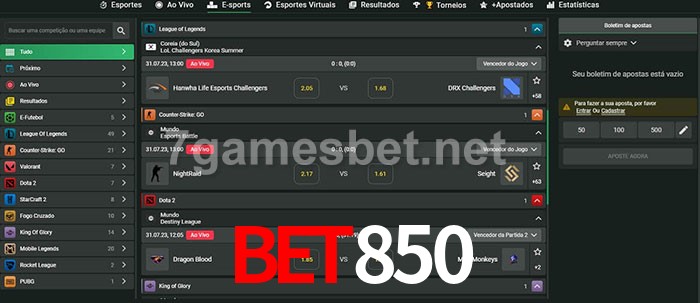 O Bet850 oferece uma grande seleção de opções de apostas em e-sports com probabilidades competitivas